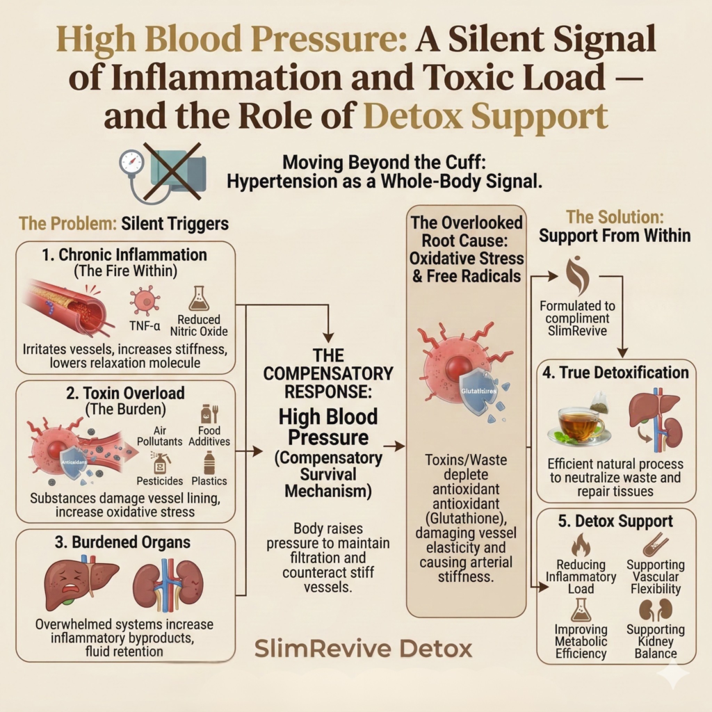 By improving detox efficiency, reducing oxidative stress, and supporting liver, kidney, and vascular health, the body is better equipped to regulate pressure naturally—alongside appropriate medical care.